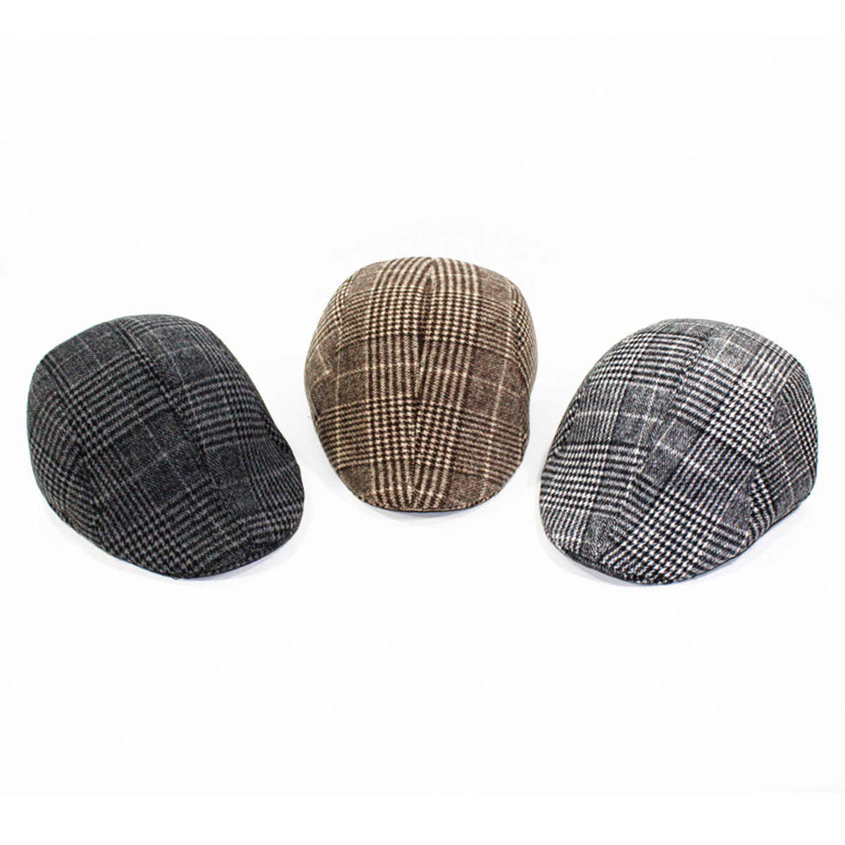 新型秋冬保温前進帽ベレー帽レトロ古典格子男鴨舌帽中高年帽子卸売り