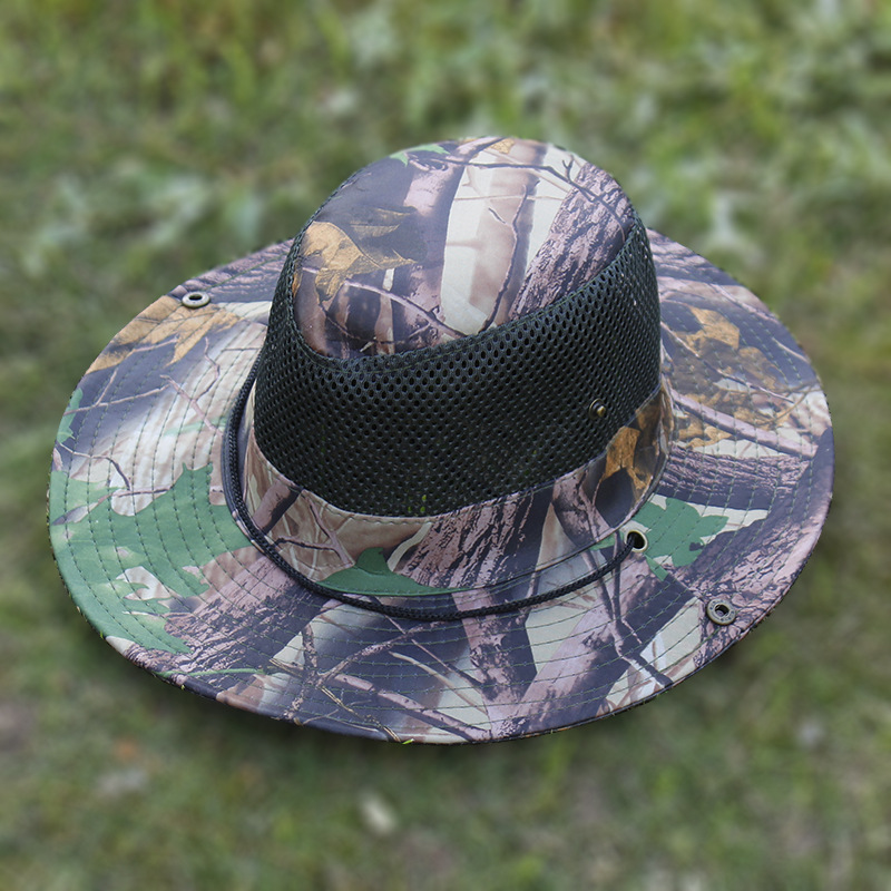 夏の奔尼帽メッシュ男性日焼け止め屋外日除けの大きなひさしの木迷彩メッシュ帽子釣り帽子クロスボーダー