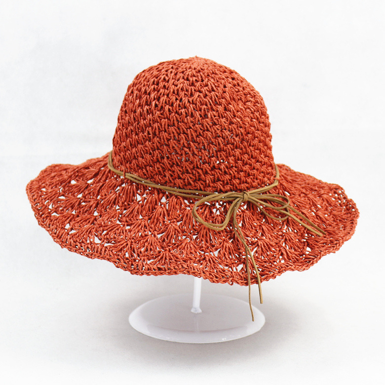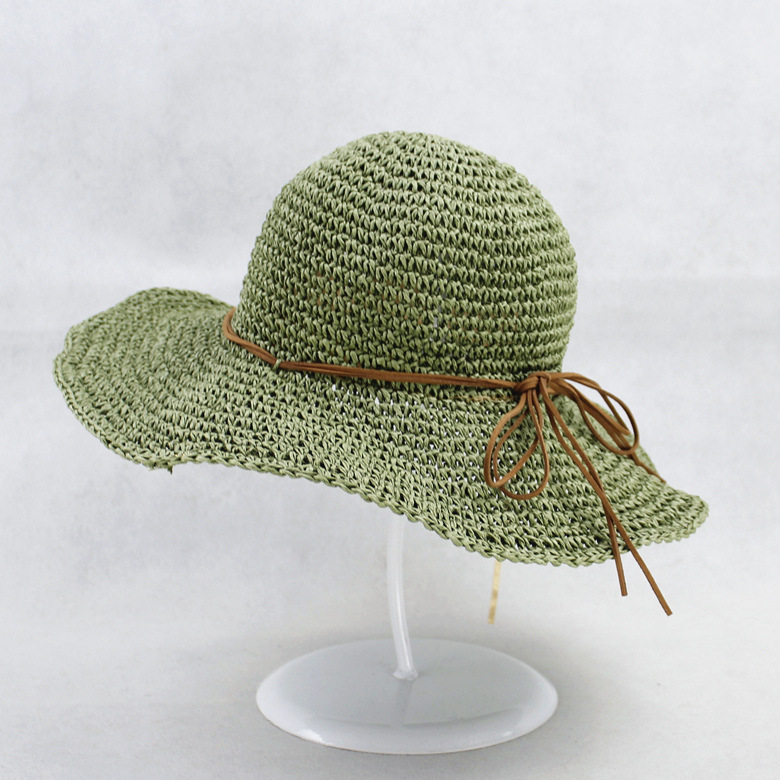新しい夏の手作り折り畳み可能な麦わら帽子の女性の大きな軒のビーチの麦わら帽子の旅行紙の日よけ帽子のビーチの太陽の帽子