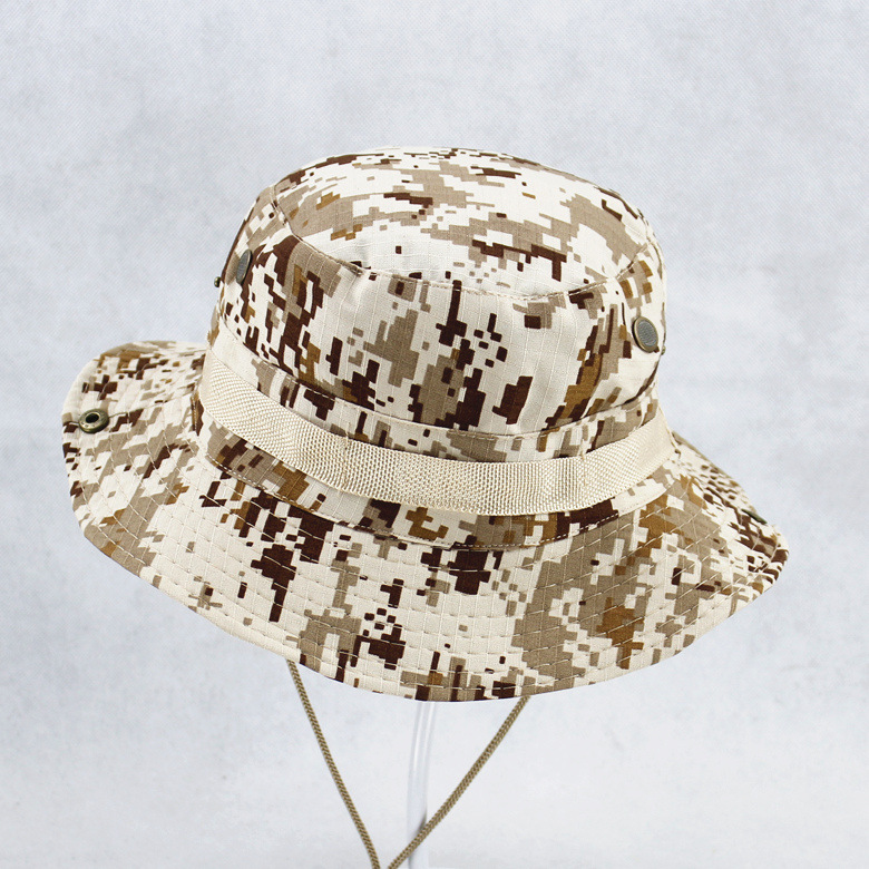 新型の軍事ファンの丸い帽子の屋外の奔尼帽は布の迷彩の帽子の男の大きい帽子に沿って登山して帽子の越境の商品を遮ります。