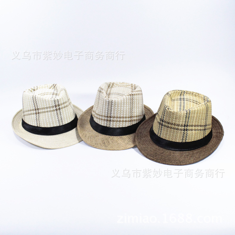男性と女性用の帽子、夏の韓国スタイルの麦わら帽子、大きなつば付きの格子縞の帽子、麦わら帽子、ジャズハット、カラーマッチングのカップル用サンバイザー
