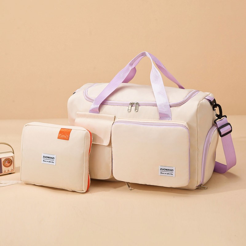 多機能セットタイロッド旅行バッグ女性の乾湿分離ダブルバック荷物バッグ