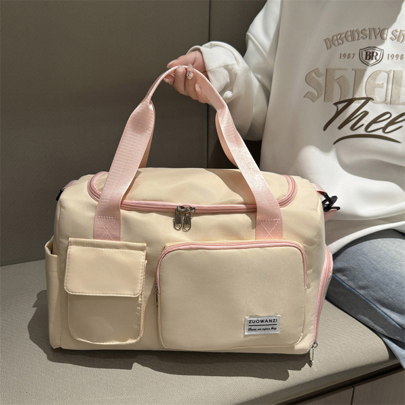 カジュアルでシンプルな旅行バッグ2025新型外出短距離荷物バッグ独立靴倉庫運動ヨガバッグ女性