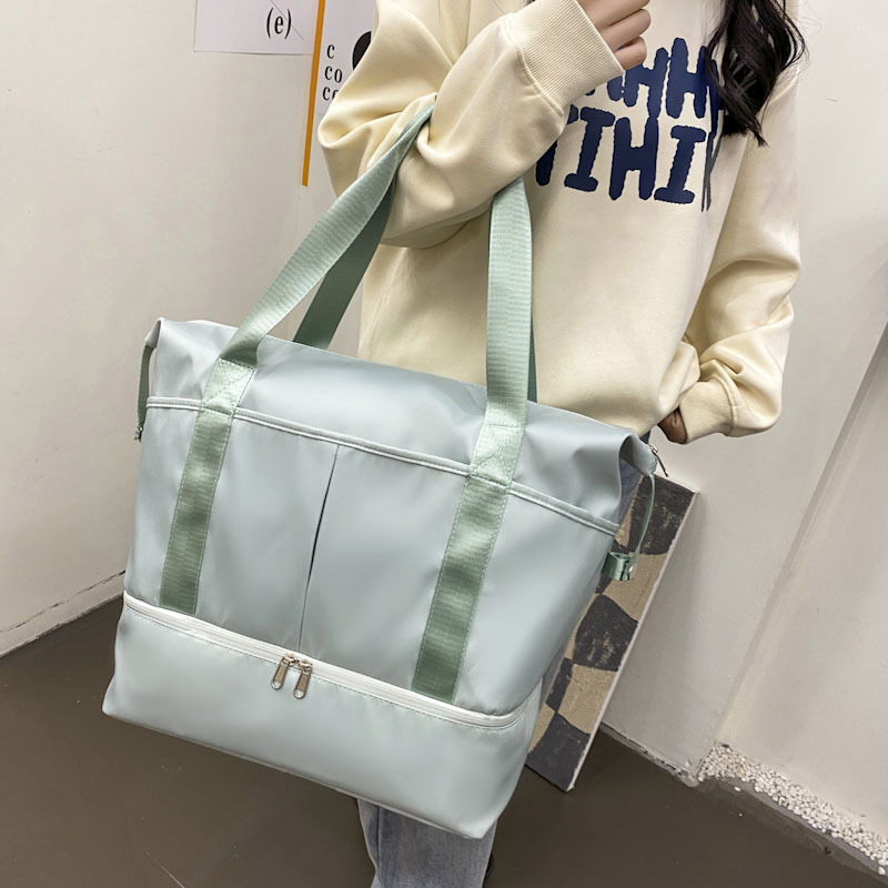 シンプルなレジャー乾湿分離旅行バッグ女性大容量軽量スポーツフィットネスバッグオックスフォード布引っ越し荷物バッグ