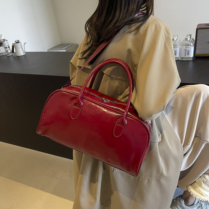 新品レッド旅行ハンドバッグレディース小型軽量シンプルスポーツフィットネスバッグ外出収納シングルショルダーバッグ