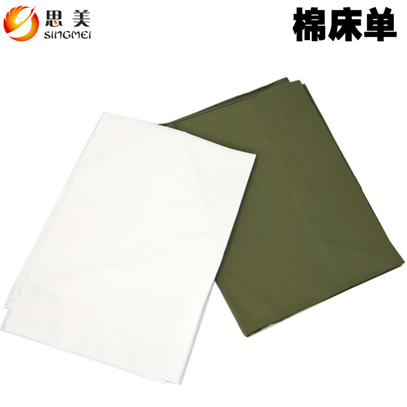卸売り軍緑綿シーツ白色シングル軍事訓練シーツ労働保護シングルグリーンシーツ
