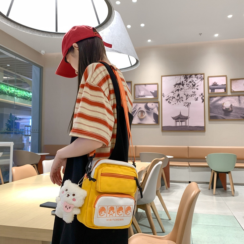 多用途で可愛い漫画プリントのショルダーバッグ、シンプルなカレッジスタイルの斜め掛けバッグ、カジュアルなリュックサック、小さめのスクエアバッグ