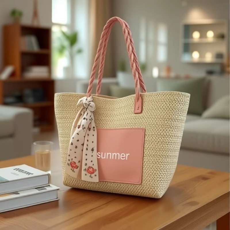 大容量バッグレディース新作夏ファッションクロスボディポータブルストローバッグ高品質ニッチ通勤トートバッグ