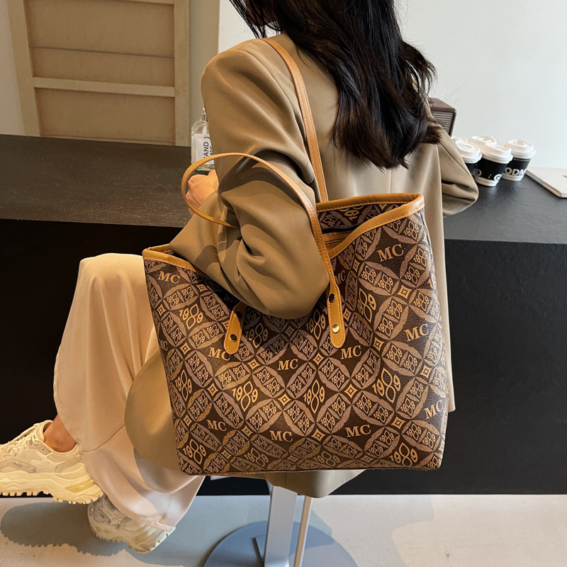 新しい大容量の多用途ショルダーバッグ、ハイエンドのカジュアルアーバンハンドバッグ、シンプルで静かな高級プリント通勤バッグ