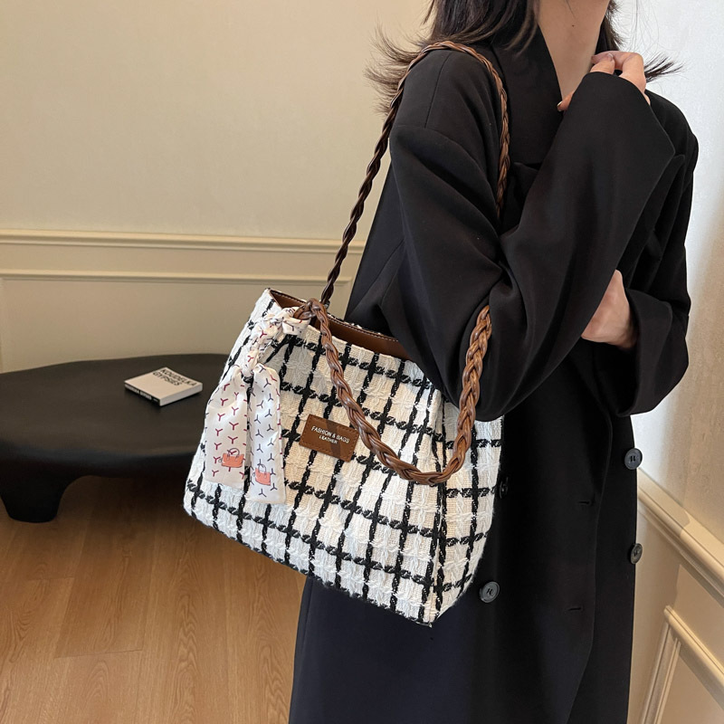 新しいファッショナブルな韓国スタイルの厚いウールのウールの大容量トートバッグ、シングルショルダークロスボディバッグ、多用途でハイエンドのレディースバッグ