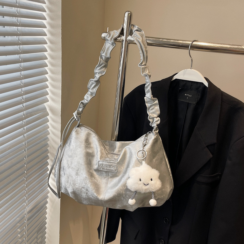 女性のための大容量シルバーバッグ 2025 新しいファッションニッチシングルショルダークロスボディバッグ人気の多用途プリーツ餃子バッグ