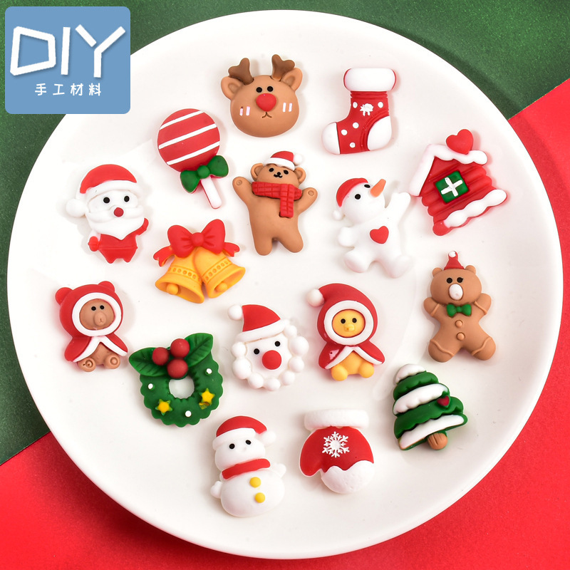 クリームゴムdiy材料の新しいマットクリスマス樹脂部品のテーマアクセサリーの自作携帯ケースのヘアピン