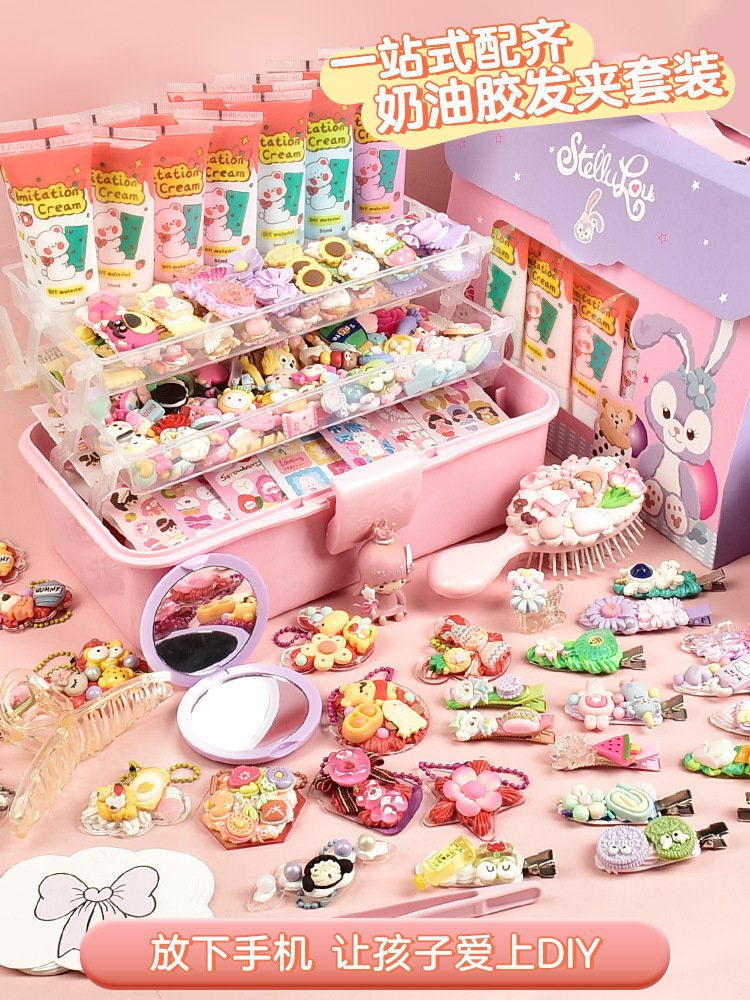 ピンク収纳ボックス子供クリームディッシュdiy材料バッグヘアクリップヘアアクセサリー树脂小物セット女の子
