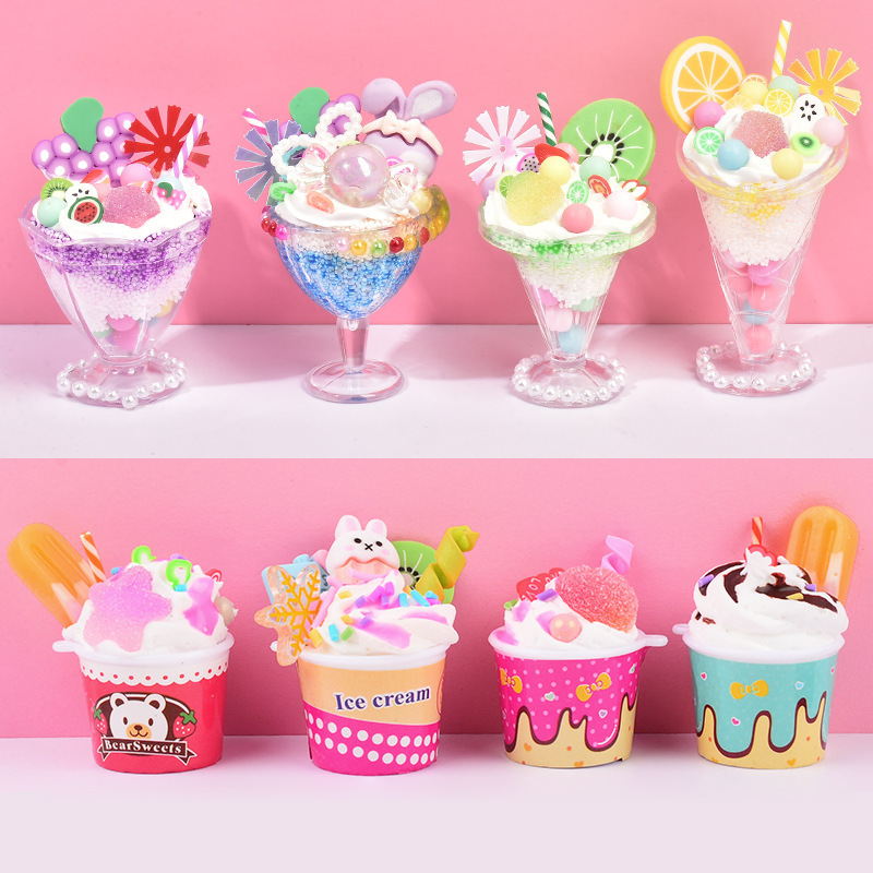 クリームゴム模擬アイスクリームカップdiy女の子手作り材料バッグ子供玩具部品グーカードセット