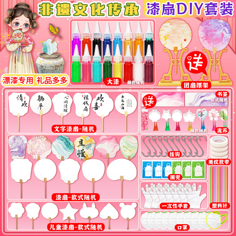 天然大漆diyセットの全セットの漆扇風機の材料は子供の初心者を包んで団扇を作ってうちわを漂わせます。