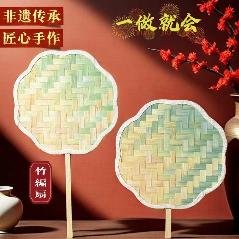 竹編み扇子diy団扇手作り材料包非遺品中国風児童中国式夏親子暖場イベント