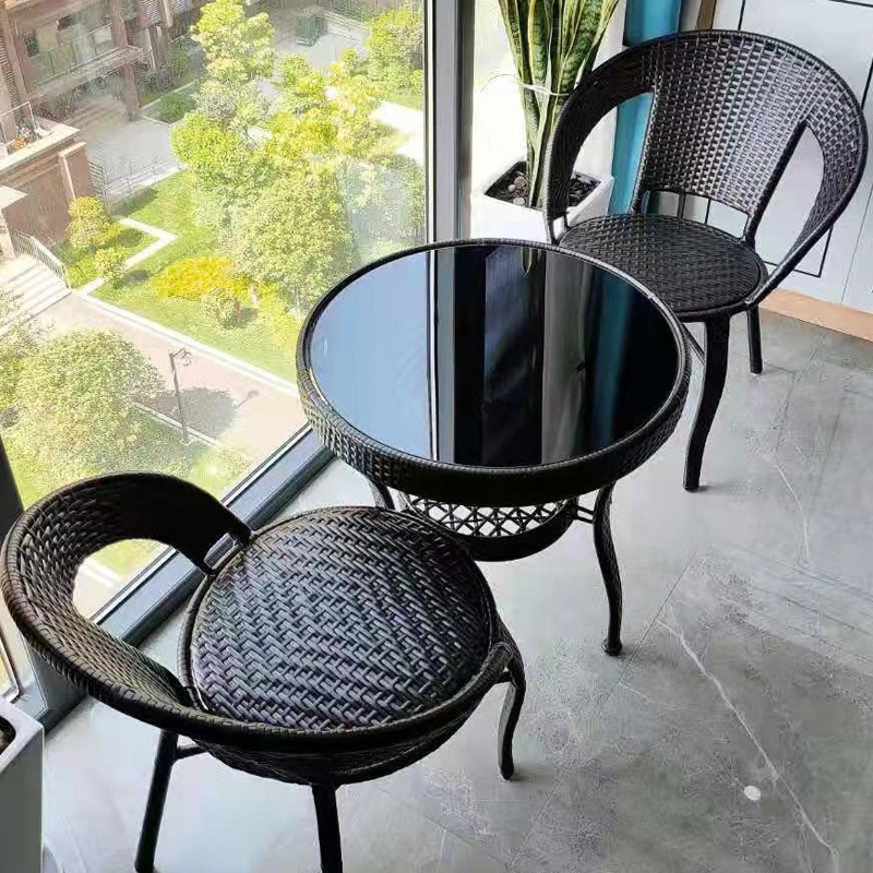 籐の椅子の3セットのベランダのテーブルと椅子の藤編みの客間の寝室の家庭用のレジャーの小さいお茶の背もたれの椅子の組み合わせ