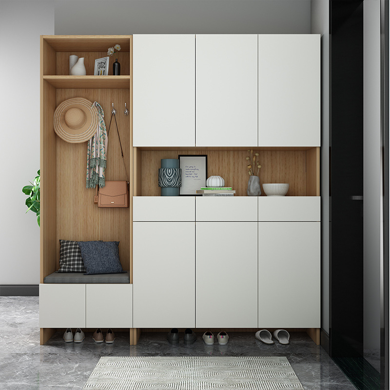 家に入る下駄箱ハンガー一体家庭用玄関収納ドアキャビネット現代シンプル実木収納玄関キャビネット
