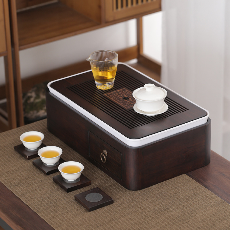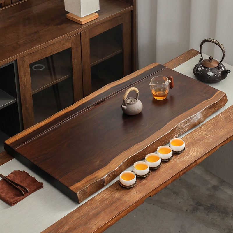 シンプルな原木茶盤家庭用黒檀実木茶台自然辺工夫茶器排水式茶海トレー