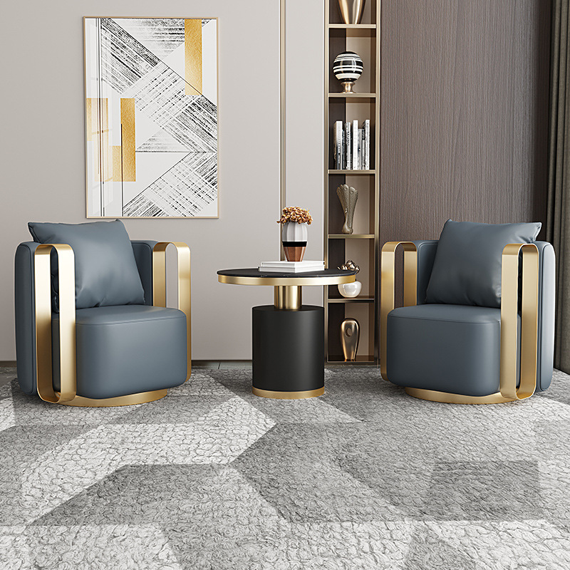 シンプルで軽い豪華なシングルソファの椅子の組み合わせ回転ホテルの受付売り場でテーブルと椅子の美容院の接客を相談します。