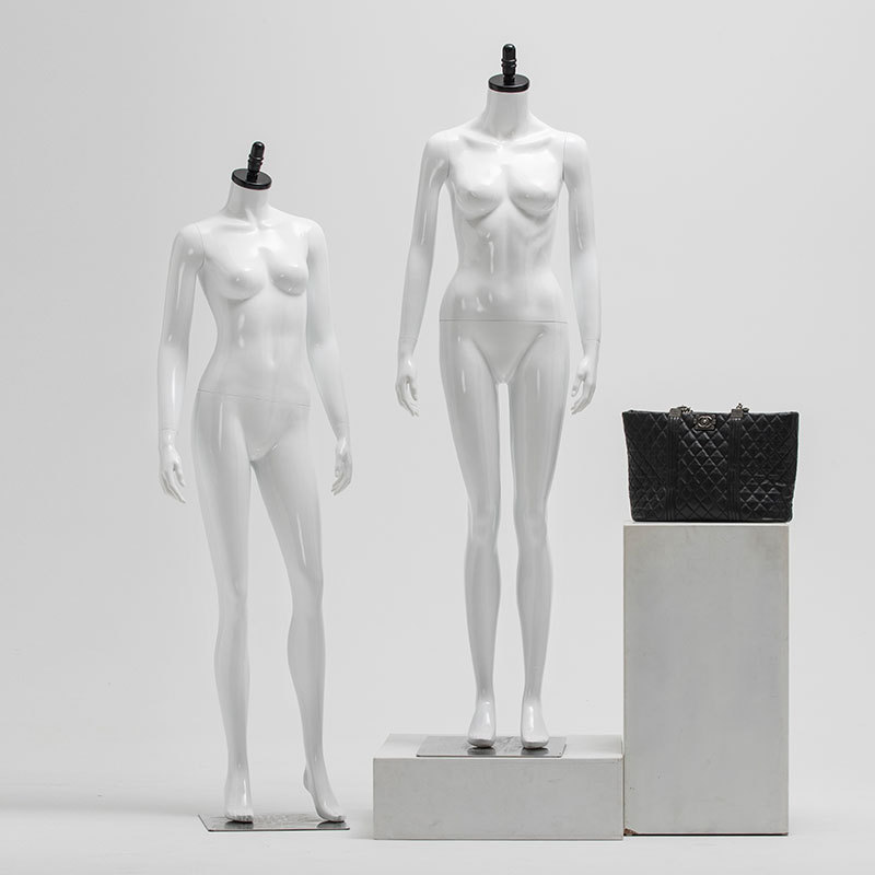 モデルの道具の女性の全身の高級な頭のないモデルの服装の店のショーウインドーはウェディングの服の人体のモデルの棚を展示します。
