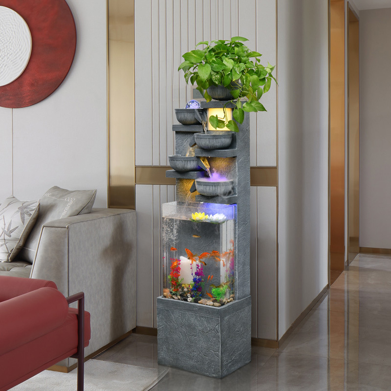 流水置物築山金魚鉢噴水水景着地家客間内加湿器入戸招財開業装飾