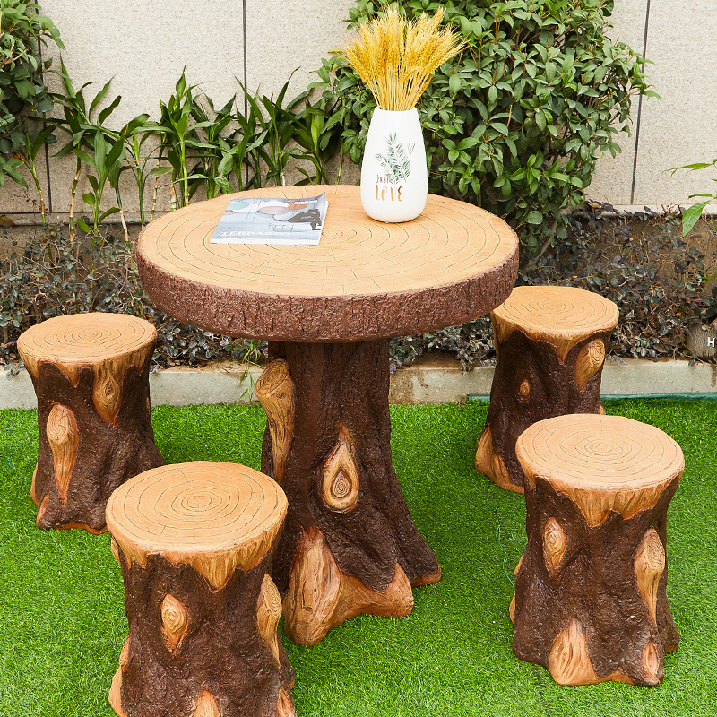 屋外は木造の根をまねて庭のお茶のテーブルと椅子を彫って組み合わせます。