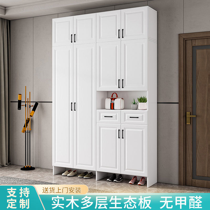 実木下駄箱家庭用玄関大容量玄関キャビネット現代シンプルな玄関一体収納キャビネット壁に寄りかかった玄関キャビネット