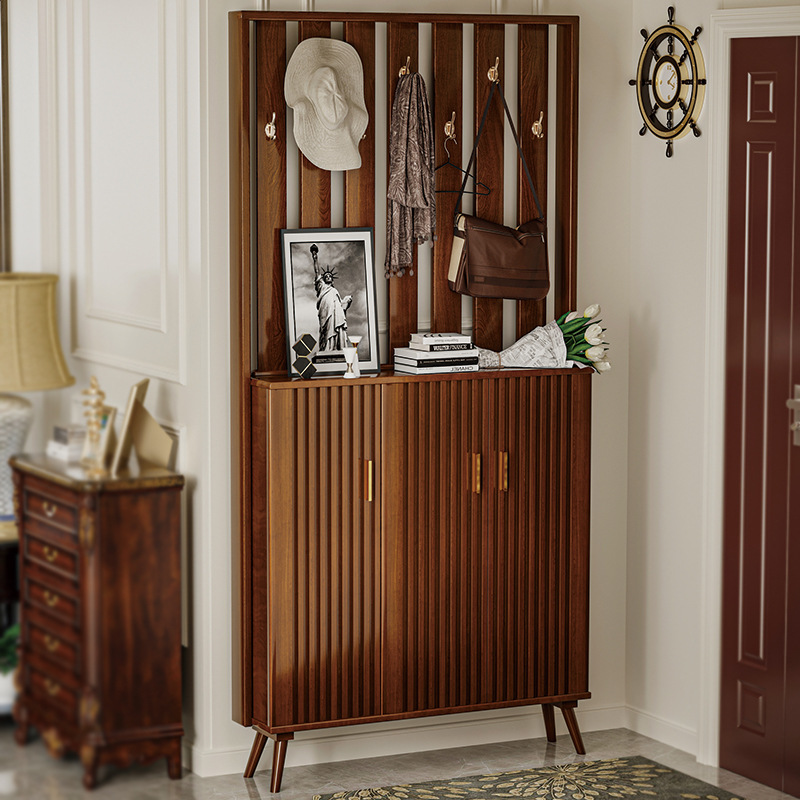 アメリカ式現代下駄箱実木家庭用玄関収納棚ハンガー付きリビングルーム玄関仕切り棚