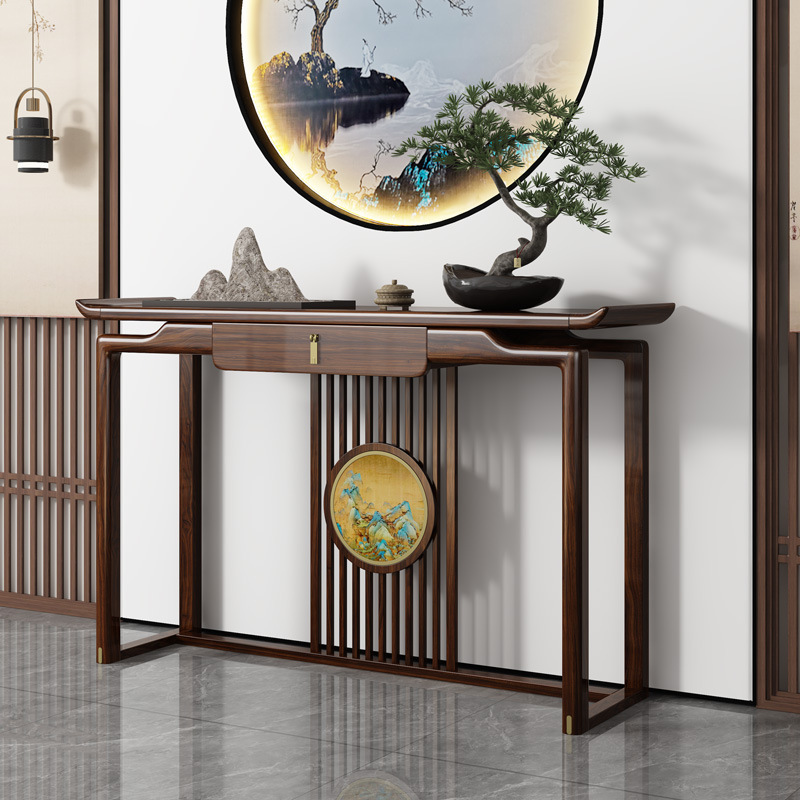 新中国式玄関テーブル烏金木条案客間入戸門供用テーブル壁玄関台超狭い実木玄関キャビネット