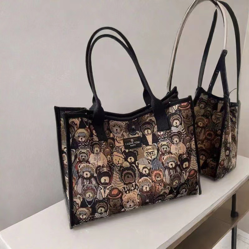 Ins日系アニメ熊プリントキャンバス学生ショルダーバッグ