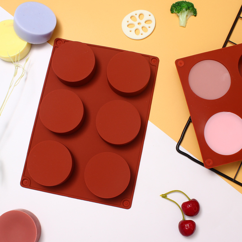 6連小型円柱型シリコンケーキ型 DIYチョコレートベーキングツール 手作り石鹸月餅型 シリコンケーキ型