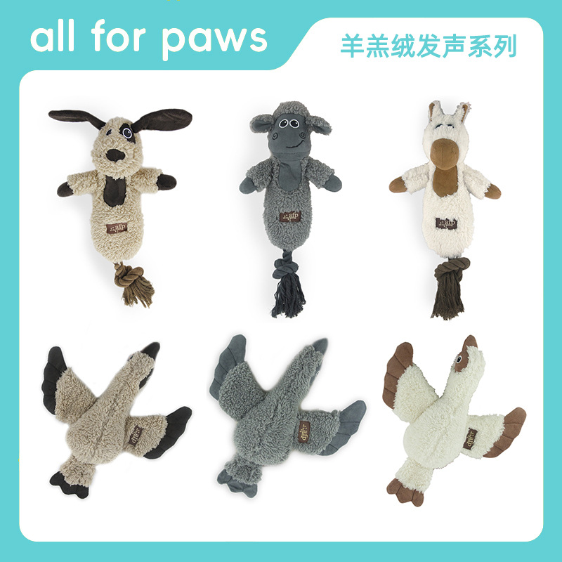AFPぬいぐるみ犬のおもちゃの歯磨きひもが音を立てている子犬の中の大型犬は辺牧金毛羊のぬいぐるみに付き添う