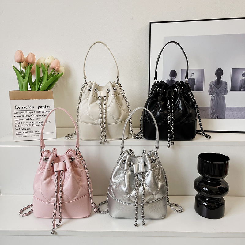 国境を越えた対外貿易で起爆したバケツバッグ女2023新型小香風ファッション菱格チェーンシングルショルダーバッグ