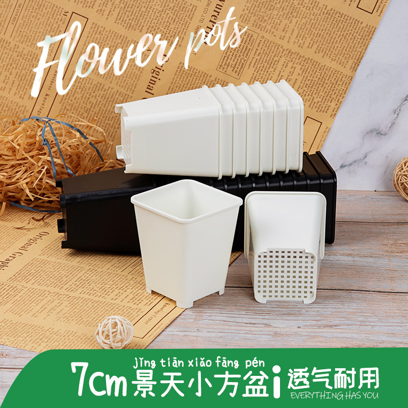 ll 小さな白い正方形の多肉植物の植木鉢プラスチック製の小さな黒い正方形の景天 7 正方形のポット厚みのある小さな高ポット植物の葉