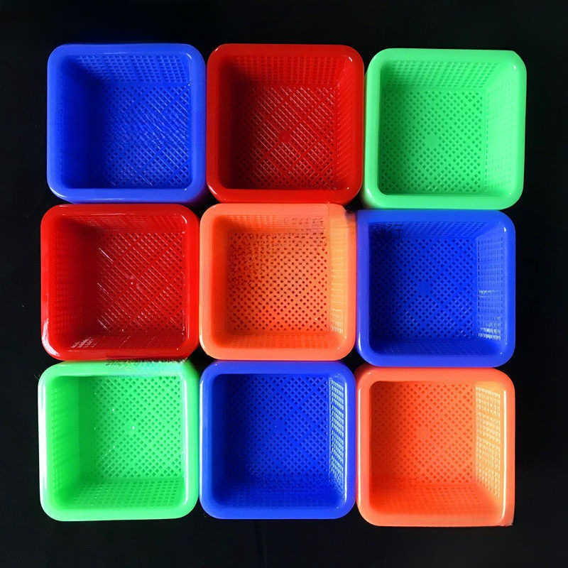 小さな青い正方形の小さなバスケットプラスチックミニ小さな調理済みプラスチック果物と野菜の水切りバスケット部品幼児用