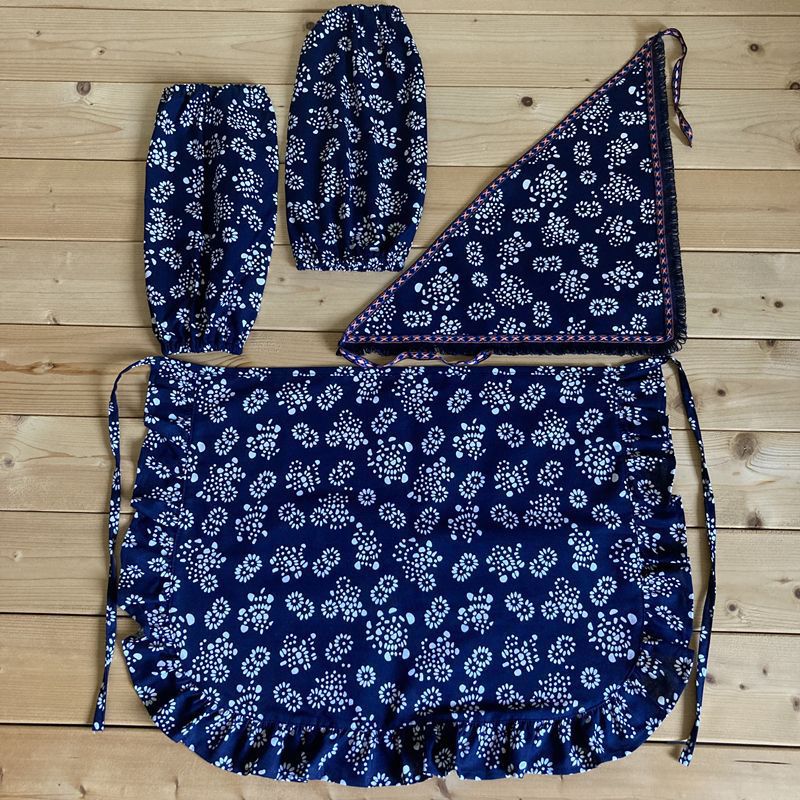 綿ブループリント布エプロン牧歌的な小花柄ダンスパフォーマンスホームキッチンケータリングスモック防汚通気性