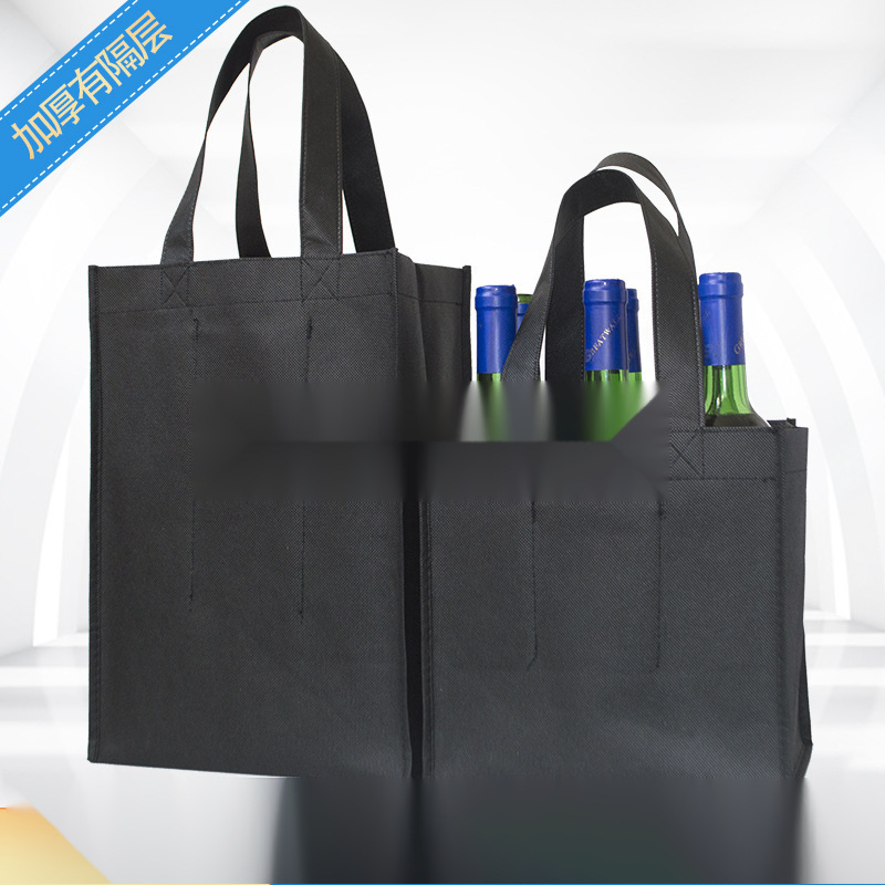 不織布赤ワインバッグ、厚みのあるギフト包装袋、4個と6個の手持ちワインバッグ、ハンドバッグ