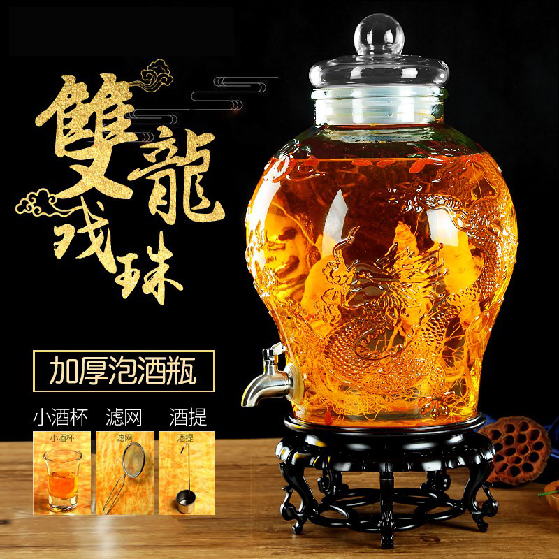 双龍厚ガラスワインボトル蛇口付き 10 斤 20 ワイン瓶高麗人参ワイン瓶密封酵素ボトルワイン樽容器
