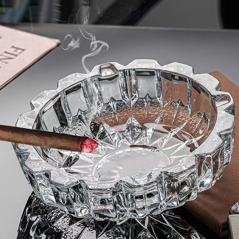 創意的なハンマーガラス灰皿家庭用リビングルーム氷河紋ファッションオフィスの精緻な灰皿は大きな厚い灰皿です。