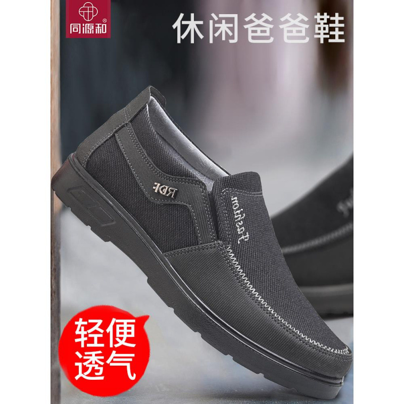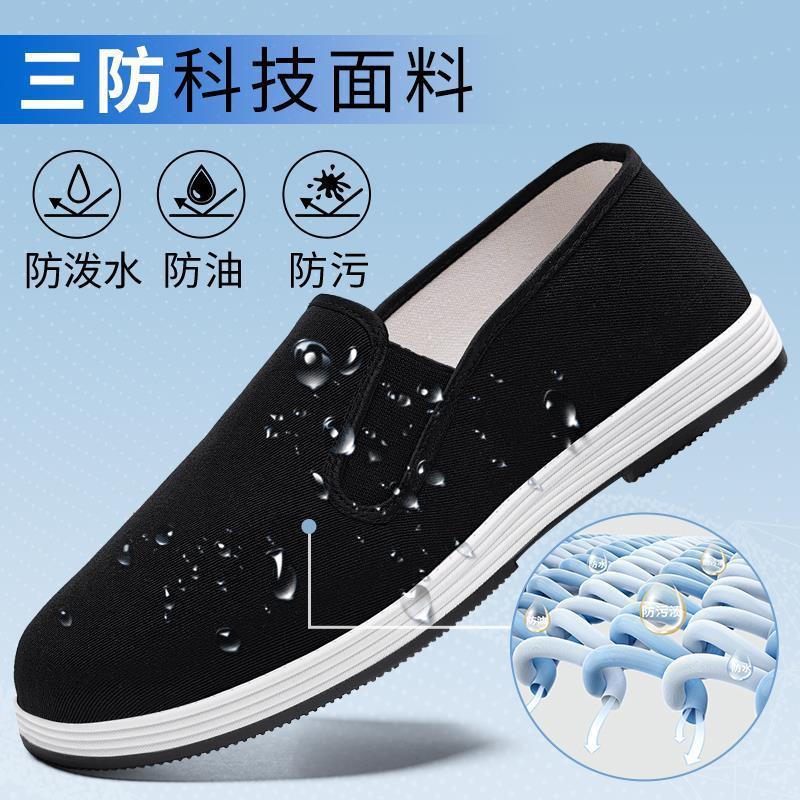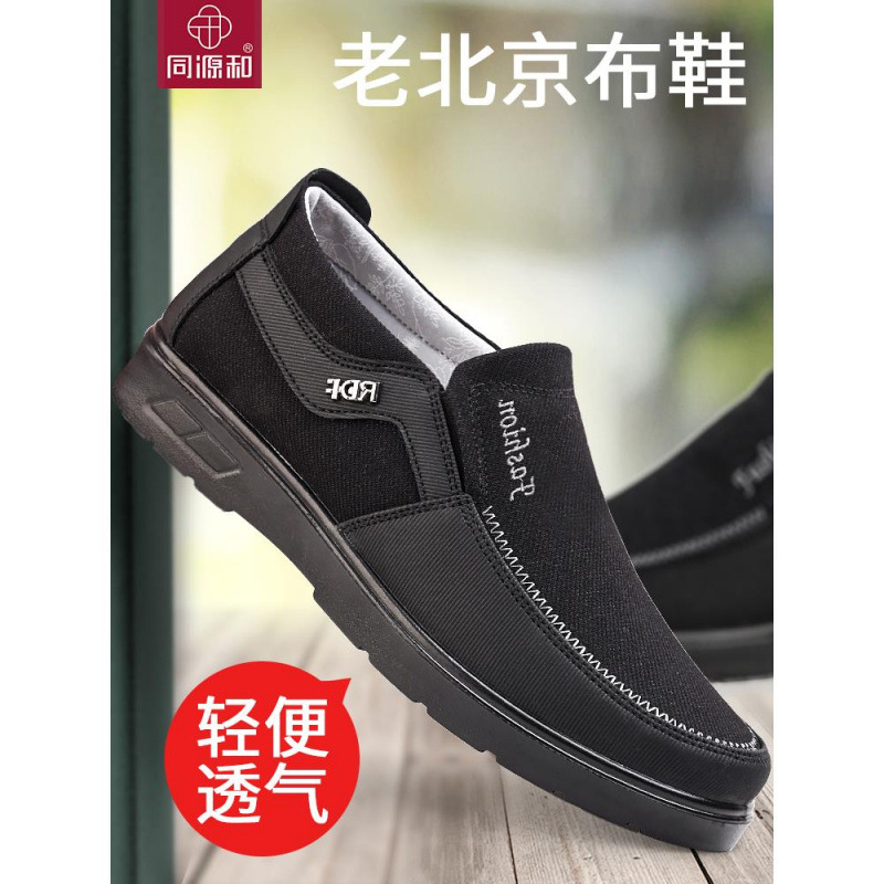 手作りの古い北京布靴、男性用の新しい手作り靴、春のスリッポンお父さん靴、中高年向けの快適な大きいサイズ