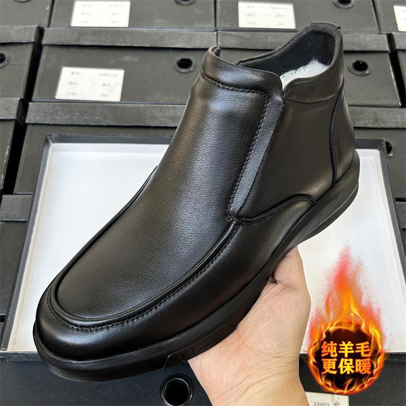 メンズフットカバーコットンシューズ、ベルベットと厚みのあるファー、オールインワン、暖かい冬の中高年お父さんスノーブーツ、メンズ本革