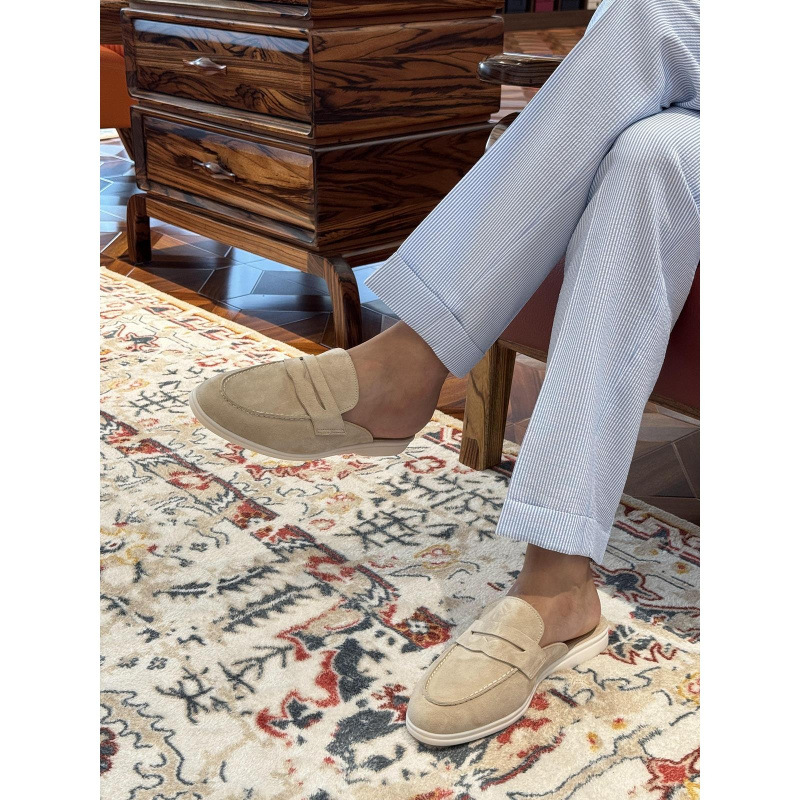 紳士靴輸入羊スエードフラットスリッポンローファートゥハーフスリップミュールシューズメンズカジュアル快適スリッパ