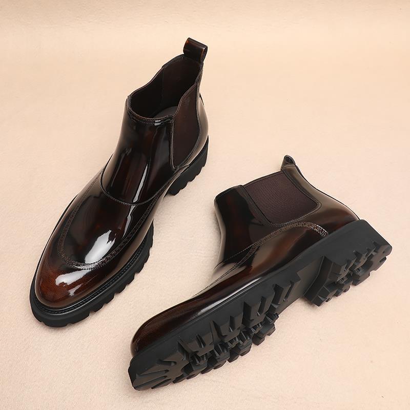 新しい英国ビジネスカジュアルファッション多用途本革快適で通気性のあるレザーブーツ厚底韓国風秋冬チェルシーブーツ