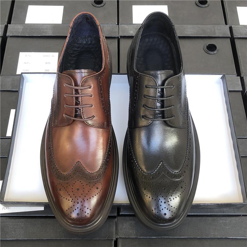 ワイドヘッドブローグレザーシューズメンズビジネスフォーマルレザー通気性スーツワーク彫刻メンズ新郎結婚式の靴