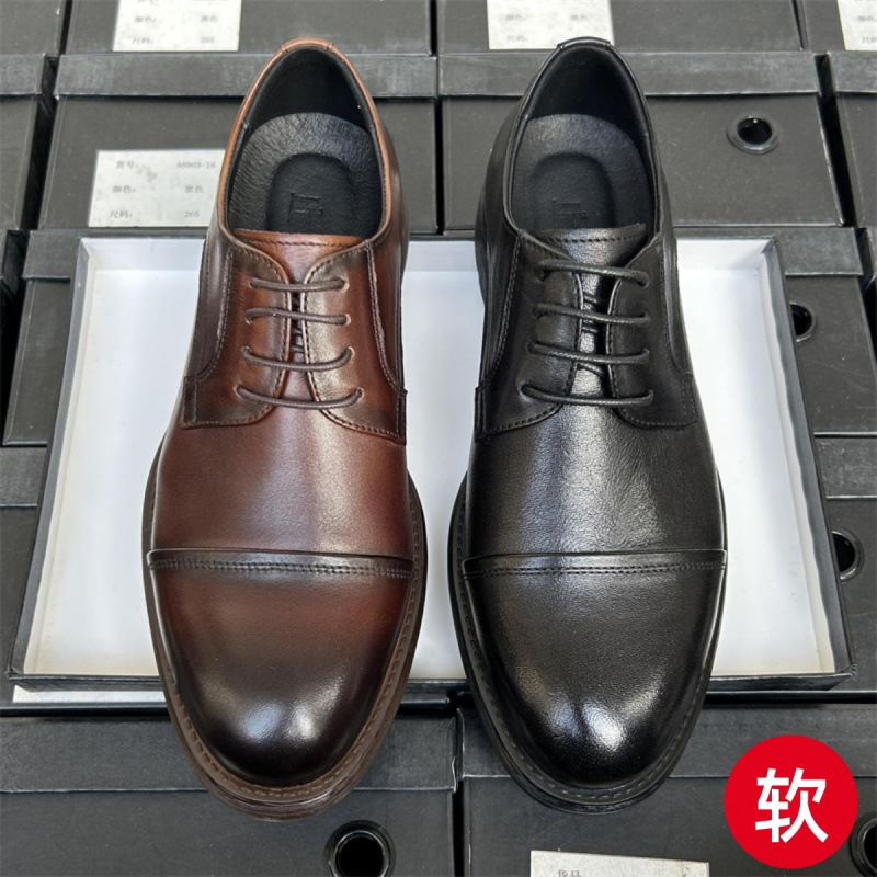 スリージョイント革靴メンズ本革ダービーシューズ夏通気性紳士靴ビジネスカジュアル革靴レトロカラーブラッシングソフトレザートレンディ