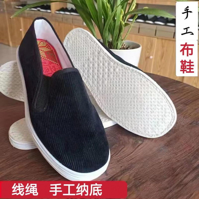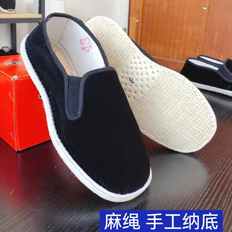 純粋に手作りされた古い北京手編み麻ロープ千層底春と夏の男性と女性の伝統的な通気性のある田舎の布靴コーデュロイ