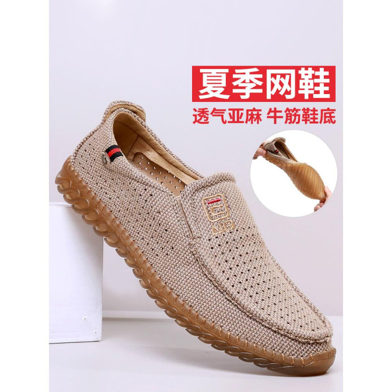 手作り紳士靴、新しい夏の通気性のあるカジュアルスポーツシューズ、古い北京布靴、薄いメッシュ靴、柔らかい底の滑り止めお父さん靴