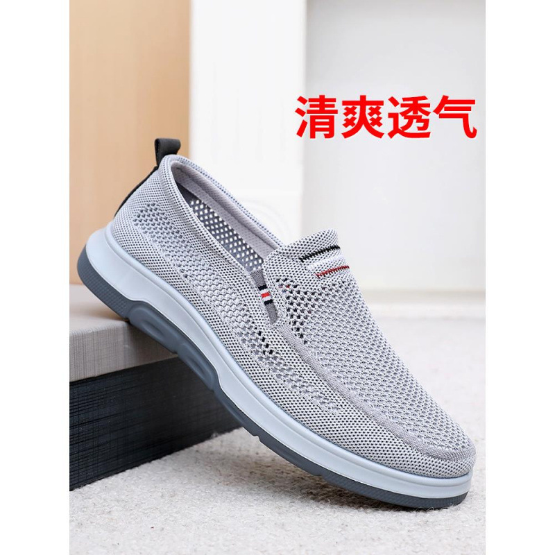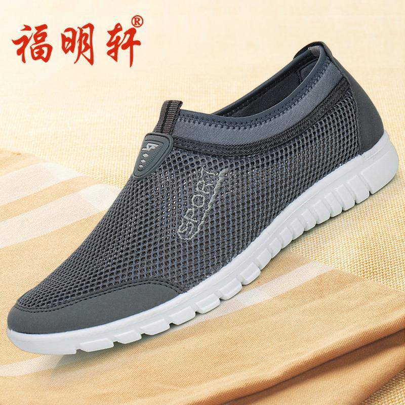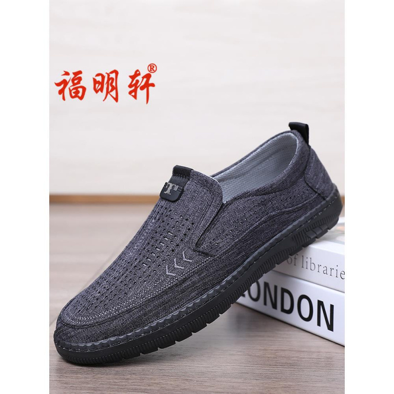 古い北京布靴紳士靴夏通気性薄型カジュアルシューズスリッポン高齢者靴中高年お父さんメッシュ靴