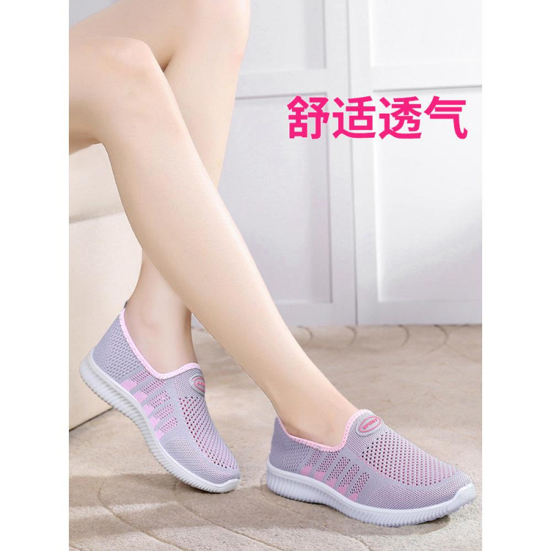 古い北京布靴、女性用メッシュシューズ、夏用通気性メッシュスリッポンスポーツカジュアルシューズ、快適なマザーズシューズ、ウォーキングサンダル